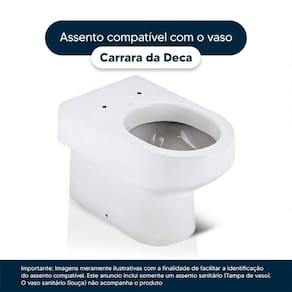 Detalhes e Cuidados Especiais: * Cor: Creme * Compatibilidade: Modelo Carrara da marca Deca * Conteúdo da Embalagem: Assento sanitário, parafusos de fixação e instruções de instalação. * Fabricante do Assento Sanitário: Pontto Lavabo.
