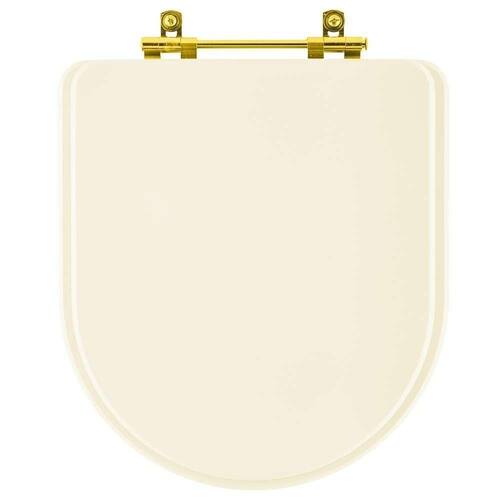Assento Sanitário Almofadado Carrara Creme Bege Claro Para Vaso Deca Com Ferragem Dourada