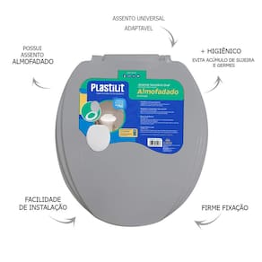 Contém: 1 - Assento Sanitário Almofadado Cinza Plastilit 2- 2x Parafusos e 2x Porcas de instalação