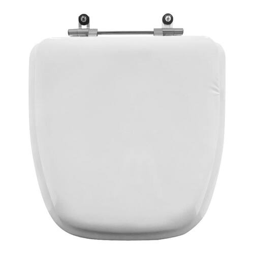 Este Assento Sanitário é produzido com base em MDF, camada de espuma macia e revestimento em vinil plástico brilhante. É muito macio e confortável. A ferragem é metálica em alumínio anodizado e não enferruja.