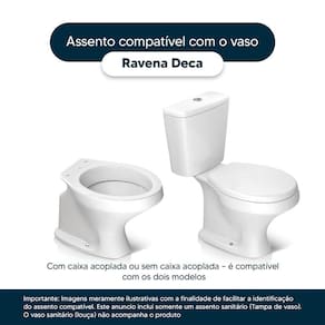 É compatível para uso em vaso sanitário Deca modelo Ravena com ou sem caixa acoplada.