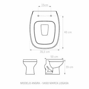 Assento Sanitário Almofadado (tampa de vaso) fabricado em polipropileno e polietileno especial. Resistente, durável, com excelente acabamento e design sofisticado. Assento macio, arco almofadado.Devido a sua composição este produto é totalmente impermeável e de fácil limpeza e higienização. Compatível com vasos sanitários de descarga convencional e também vasos com caixa acoplada. Acabamento brilhante no tampo e no assento. Fixação regulável para o perfeito encaixe na louça sanitária. Fácil limpeza, é higiênico e não acumula sujeira. O assento é acompanhado por parafusos para instalação e acabamentos. Embalagem dupla reforçada garante o recebimento do produto totalmente protegido. Especificações: - Dimensões da caixa: largura: 50,00cm. Altura: 4,00cm comprimento: 40,00cm - Acabamento: brilhante - Uso: este assento é adequado para uso na louça Logasa modelo Angra - Garantia: 3 meses - Itens inclusos: Tampa e assento, parafusos e embalagem duplamente reforçada. Instalação: posicione o produto, devidamente centralizado, em cima do vaso sanitário. Encaixe os parafusos e encaixe as porcas. Aperte até que o assento esteja firme no vaso. Manutenção: recomendamos a limpeza periódica com pano levemente umedecido com sabão neutro. Não usar esponjas abrasivas ou palha de aço nem qualquer tipo de produto químico.