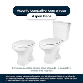 Este assento sanitário é compatível para uso em vaso sanitário Deca modelo Aspen com ou sem caixa acoplada.