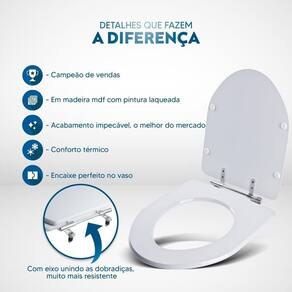 Durabilidade e Resistência: Fabricado em MDF com camadas de pintura laqueada, este assento oferece não apenas beleza, mas também conforto térmico e alta resistência. Seu acabamento impecável adiciona um toque de classe ao seu banheiro.