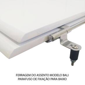 Assento Sanitário (tampa de vaso) fabricado em madeira MDF com pintura laqueada, com proteção raios UV, que garante excelente acabamento e durabilidade. Compatível com vasos (bacias/louças) sanitários com ou sem caixa acoplada. Tem calços de PVC instalados na tampa e no assento para proporcionar estabilidade ao uso, pois distribui o peso uniformemente sobre a louça sanitária. Montagem simples e fácil. Possui ferragem em alumínio anodizado que não enferruja/oxida e oferece muita resistência. O assento é acompanhado por parafusos para instalação. Embalagem dupla reforçada garante o recebimento do produto totalmente protegido. Especificações: - Dimensões da caixa: largura: 49,50cm. Altura: 4,00cm comprimento: 39,50cm - Peso do produto: 1,98kg - Acabamento: brilhante - Uso: este assento é adequado para uso na louça Incepa modelo Bali - Garantia: 3 meses - Itens inclusos: Tampa e assento em MDF com calços de PVC, ferragem inoxidável, embalagem duplamente reforçada. Contém todos os parafusos e encaixes para instalação, sendo necessária somente uma chave de fenda para instalar o produto na louça sanitária. Instalação: posicione o produto, devidamente centralizado, em cima do vaso sanitário. Sem desmontar a ferragem, insira as buchas de borracha dentro dos furos da bacia sanitária. Encaixe os parafusos e posicione as porcas. Utilizando uma chave de fenda, aperte o parafuso no sentido horário até que o assento esteja firme e fixo no vaso. Manutenção: recomendamos a limpeza periódica com pano levemente umedecido com sabão neutro. Não usar esponjas abrasivas ou palha de aço nem qualquer tipo de produto químico.