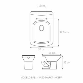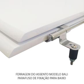 Assento Sanitário (tampa de vaso) fabricado em madeira MDF com pintura laqueada, com proteção raios UV, que garante excelente acabamento e durabilidade. Compatível com vasos (bacias/louças) sanitários com ou sem caixa acoplada. Tem calços de PVC instalados na tampa e no assento para proporcionar estabilidade ao uso, pois distribui o peso uniformemente sobre a louça sanitária. Montagem simples e fácil. Possui ferragem em alumínio anodizado que não enferruja/oxida e oferece muita resistência. O assento é acompanhado por parafusos para instalação. Embalagem dupla reforçada garante o recebimento do produto totalmente protegido. Especificações: - Dimensões da caixa: largura: 51,50cm. Altura: 4,00cm comprimento: 38,00cm - Peso do produto: 1,98kg - Acabamento: brilhante - Uso: este assento é adequado para uso na louça Incepa modelo Bali - Garantia: 3 meses - Itens inclusos: Tampa e assento com calços de PVC, ferragem inoxidável, embalagem duplamente reforçada. Contém todos os parafusos e encaixes para instalação, sendo necessária somente uma chave de fenda para instalar o produto na louça sanitária. Instalação:posicione o produto, devidamente centralizado, em cima do vaso sanitário. Sem desmontar a ferragem, insira as buchas de borracha dentro dos furos da bacia sanitária. Utilizando uma chave de fenda, aperte o parafuso no sentido horário até que o assento esteja firme no vaso. Manutenção: recomendamos a limpeza periódica com pano levemente umedecido com sabão neutro. Não usar esponjas abrasivas ou palha de aço nem qualquer tipo de produto químico.