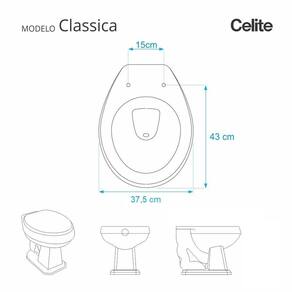 Este assento sanitário é compatível para uso em vaso sanitário Celite modelo Classica com ou sem caixa acoplada.