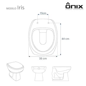 Compatível com o modelo Irisda marca Onix, este assento se encaixa perfeitamente no vaso sanitário.