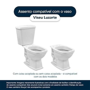 Detalhes e Cuidados Especiais: * Cor: Preto * Compatibilidade: Modelo Viseu da marca Luzarte * Conteúdo da Embalagem: Assento sanitário, parafusos de fixação e instruções de instalação. * Fabricante do Assento Sanitário: Pontto Lavabo.