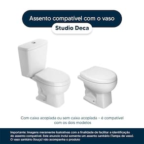 Instalação Simples e Rápida: Com todos os parafusos e componentes necessários inclusos, a instalação é rápida e descomplicada. Seu novo assento estará pronto para uso em questão de minutos. Desenvolvido especificamente para o modelo Studio da marca Deca, com ou sem caixa acoplada, proporciona um encaixe perfeito, oferecendo estabilidade e conforto durante o uso.