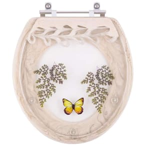 Link kit contendo um assento Sanitário de Poliester com lixeira de mesma decoração. Receba ainda mais elogios para seu banheiro. Assento sanitário em resina de Poliester, material semelhante ao acrílico só que mais robusto / resistente. É o assento sanitário de maior beleza com resistência e estética inigualável. O assento tem marmorizado na cor bege claro e a tampa é transparente com decoração de avenca com borboleta. Altura do assento sanitário: 3,3cmLargura do assento sanitario: 38cmComprimento do assento sanitario: 43cm Lixeira com tampa decorada com avenca e borboleta. Possui tampa no mesmo material e decoração do assento sanitário. O corpo da lixeira é em plástico polipropileno, muito resistente e fácil de limpar. Altura da lixeira: 20cmLargura da lixeira: 20cm Os produtos de poliéster com decoração podem apresentar uma eventual variação em relação as fotos apresentadas, pois tem em seu processo de fabricação uma parte puramente artesanal, o que lhes confere identidade única e absoluta originalidade. Cor: Bege Claro marmorizado com decoração avenca e borboletaImpermeável: Sim