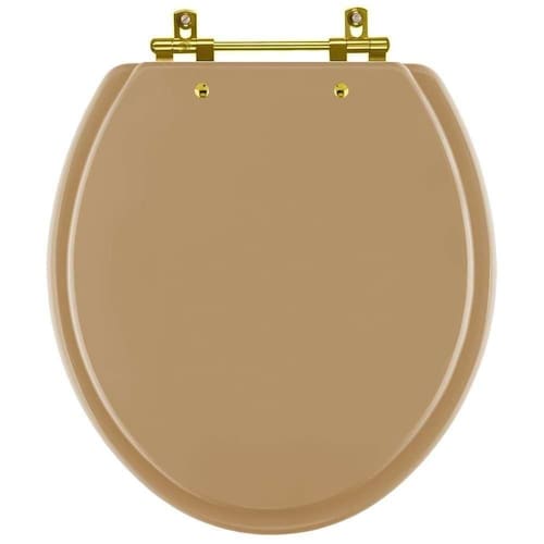 Assento Sanitário Convencional Oval Bege Castor Para Vaso Deca Com Ferragem Dourada