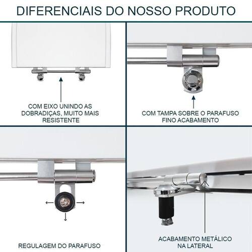 Itens inclusos: assento e tampa em madeira MDF com pintura laqueada. Ferragens metálicas em alumínio anodizado muito resistente, não oxidam e não enferrujam.
