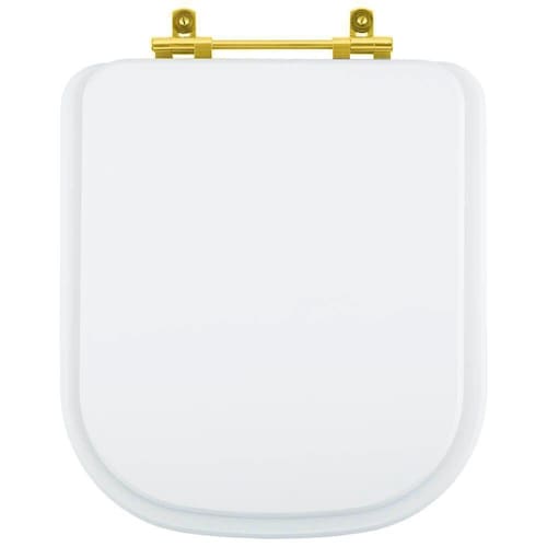 Itens inclusos: assento sanitário em madeira MDF com pintura laqueada com ferragem dourada em alumínio anodizado.