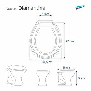 Este assento sanitário é compatível para uso em vaso sanitário Icasa modelo Diamantina com ou sem caixa acoplada (é compatível com os dois tipos de vasos).
