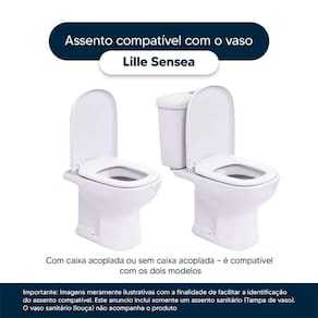 Detalhes e Cuidados Especiais: * Cor: Branco * Compatibilidade: Modelo Lilleda marca Sensea* Conteúdo da Embalagem: Assento sanitário, parafusos de fixação e instruções de instalação. * Fabricante do Assento Sanitário: Pontto Lavabo (enviado na caixa conforme foto no anúncio).
