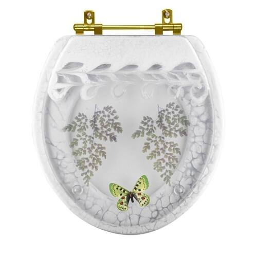 Assento Sanitário Decorado Oval Convencional Com Borboleta Verde Para Todas As Marcas Com Ferragem Dourada O Assento Sanitário Decorado Oval Convencional Com Borboleta Verde para todas as marcas Com Ferragem Dourada é a opção ideal para quem busca combinar funcionalidade com elegância em seu banheiro. Elegância e Diferenciação: Um design refinado e diferenciais de alto padrão. Com acabamento de excelência e ferragens em alumínio anodizado na cor Dourada que não oxidam nem enferrujam, ele é a combinação perfeita de beleza e durabilidade.