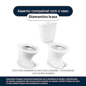 Este assento sanitário é compatível para uso em vaso sanitário Icasa modelo Diamantina com ou sem caixa acoplada.