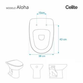 Assento Sanitário em MDF Aloha Branco para bacia Celite traz beleza e praticidade ao seu banheiro. Este Assento Sanitário é fabricado em MDF, com acabamento em pintura laqueada brilhante e ferragem metálica que não oxida. Esta Assento Sanitário pode ser usada em bacia sanitária com ou sem caixa acoplada. Instalação rápida e fácil, acompanha os parafusos de fixação e basta apenas uma chave de fenda para instalar no vaso. Entrega garantida e rastreada com embalagem dupla reforçada. Cor: Branco. Distância entre centros dos furos da louça: 15 cm. Acabamento: brilhante. Dicas: Itens inclusos: produto completo, assento e tampa em madeira MDF pintado e ferragem em alumínio. Limpeza: recomenda-se a limpeza com pano úmido e sabão neutro e não utilizar produtos abrasivos ou químicos. Instalação: Sem desmontar o produto, posicione sobre o vaso sanitário e encaixe os dois parafusos com as borrachas pretas dentro dos furos do vaso. Aperte com a chave de fenda no sentido horário até ficar firme. Importante: este anúncio inclui somente o produto conforme descrição acima. Todos os elementos decorativos das fotos não estão inclusos. Observação: O código 6LPF gravado na bacia sanitária corresponde ao fluxo de água de uma descarga e não indica o modelo da mesma.