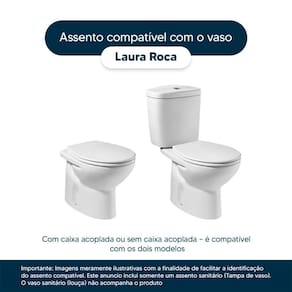 Este assento sanitário é compatível para uso em vaso sanitário Roca modelo Laura com ou sem caixa acoplada.