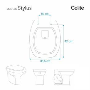Assento Sanitário em MDF Stylus Branco para bacia Celite. Conforto, qualidade e elegância para o seu banheiro. Este Assento Sanitário é fabricado em MDF, com acabamento em pintura laqueada brilhante e ferragem metálica que não oxida. Esta Assento Sanitário pode ser usada em bacia sanitária com ou sem caixa acoplada. Instalação rápida e fácil, acompanha parafusos de fixação e basta apenas uma chave de fenda para instalar no vaso. Embalagem dupla reforçada. Entrega garantida e rastreada. Cor: Branco. Distância entre meio dos furos da louça: 15 cm. Acabamento: brilhante. Dicas: Itens inclusos: produto completo, assento e tampa em madeira MDF pintado e ferragem em alumínio. Limpeza: recomenda-se a limpeza com pano úmido e sabão neutro e não utilizar produtos abrasivos ou químicos. Instalação: Sem desmontar o produto, posicione os dois parafusos com borrachas pretas sobre os buracos da bacia sanitária e os encaixe dentro deles. Aperte com a chave de fenda no sentido horário até ficar firme. Importante: este anúncio inclui somente o produto conforme descrição acima. Todos os elementos decorativos das fotos não estão inclusos. Observação: O código 6LPF gravado na louça sanitária corresponde ao fluxo de água de uma descarga e não indica o modelo da mesma.