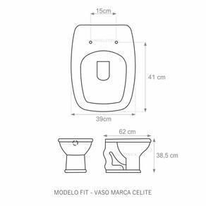 Assento Sanitário (tampa de vaso) fabricado em polipropileno, resistente, durável, com excelente acabamento e proteção contra fungos e bactérias. O produto é totalmente impermeável e de fácil limpeza e higienização. Sua superfície lisa, evita acúmulo de sujeira o que proporciona muito mais higiene ao seu banheiro. Compatível com vasos sanitários de descarga convencional e também vasos com caixa acoplada. Tem tampa com cobertura total e brilhante. Parafusos de fixação com regulagem excêntrica. Sistema Soft Close (Fechamento Suave) que amortece a batida, evitando ruídos. O assento é acompanhado por kit de fixação para instalação. Embalagem selada e papelão microondulado garante o recebimento do produto totalmente protegido. Especificações: - Dimensões da caixa: largura: 50,00cm. Altura: 4,00cm comprimento: 40,00cm - Acabamento: brilhante - Uso: este assento é adequado para uso na louça Celite modelo Fit - Garantia: 3 meses - Itens inclusos: Tampa e assento, parafusos, acabamentos e embalagem duplamente reforçada.