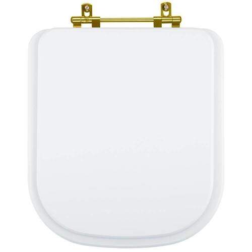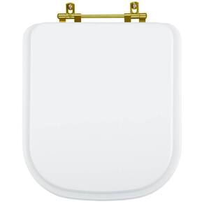 Assento Sanitário Gap Branco para vaso Roca com dourada é a escolha perfeita para seu banheiro trazendo beleza e praticidade. Este produto Assento Sanitário é produzido em MDF com diversas camadas de pintura laqueada, com acabamento brilhante e ferragem metálica dourada que não enferruja. É compatível para uso em vaso sanitário com ou sem caixa acoplada. Instalação rápida e fácil, acompanham os parafusos de fixação e basta apenas uma chave de fenda para montar. Entrega garantida e rastreada com embalagem dupla reforçada. Cor: Branco Distância entre centros dos furos da louça: 15cm Acabamento: brilhante Dicas: Itens inclusos: assento e tampa em madeira MDF com pintura laqueada, ferragem metálica e embalagem dupla reforçada. Limpeza: recomenda-se a limpeza com pano úmido e sabão neutro e não utilizar produtos abrasivos ou químicos. Instalação: Sem desmontar o produto, posicione sobre o vaso sanitário e encaixe os dois parafusos com as borrachas pretas dentro dos furos do vaso. Aperte com a chave de fenda no sentido horário até ficar firme. Importante: este anúncio inclui somente o produto conforme descrição acima. Todos os elementos decorativos das fotos não estão inclusos. Observação: O código 6LPF gravado na louça sanitária corresponde ao fluxo de água de uma descarga e não indica o modelo da mesma.
