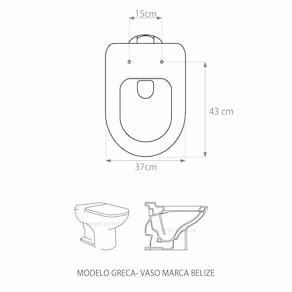 Especificações: - Dimensões da caixa: largura: 50,00cm, altura: 4,00cm, comprimento: 40,00cm - Acabamento: brilhante - Uso: adequado para uso na louça Belize modelo Greca - Garantia: 3 meses - Itens inclusos: tampa e assento, parafusos e embalagem duplamente reforçada
