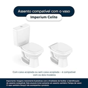 Instalação Simples e Rápida: Com todos os parafusos e componentes necessários inclusos, a instalação é rápida e descomplicada. Seu novo assento estará pronto para uso em questão de minutos. Desenvolvido especificamente para o modelo Imperium da marca Celite, com ou sem caixa acoplada, proporciona um encaixe perfeito, oferecendo estabilidade e conforto durante o uso.