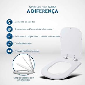 Limpeza: recomenda-se a limpeza do assento sanitário poliéster com água e sabão neutro, não utilizar produtos abrasivos.