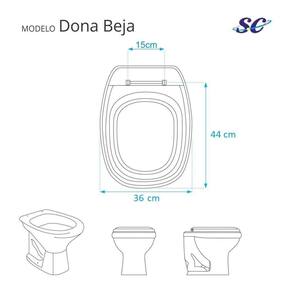 Detalhes e Cuidados Especiais: * Cor: Bege Claro * Compatibilidade: Modelo Dona Beja da marca Santa Clara * Conteúdo da Embalagem: Assento sanitário, parafusos de fixação e instruções de instalação.