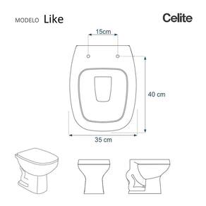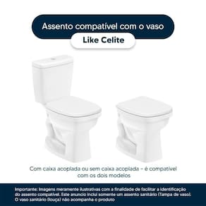 Detalhes e Cuidados Especiais: * Cor: Pergamon (Bege Claro) * Compatibilidade: Modelo Like da marca Celite * Conteúdo da Embalagem: Assento sanitário, parafusos de fixação e instruções de instalação.