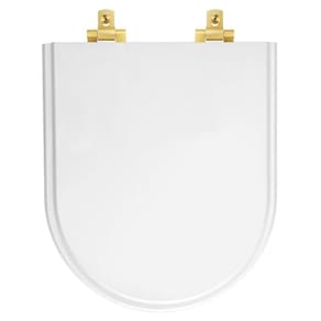 Itens inclusos: assento e tampa em madeira MDF com pintura laqueada. Ferragens na cor Dourada em alumínio anodizado muito resistente, não oxidam e não enferrujam.