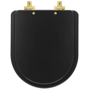 Assento Sanitário Mdf Soft Close Link-lk Preto Fosco Para Vaso Deca Com Ferragem Dourada