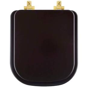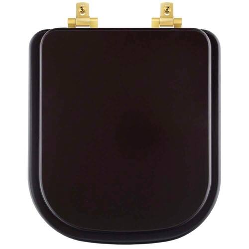 Assento Sanitário Mdf Soft Close Quadra Marrom Fosco Para Vaso Deca Com Ferragem Dourada