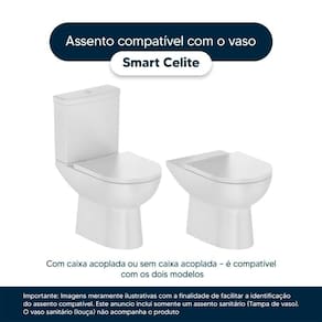 Este assento sanitário é compatível para uso em vaso sanitário Celite modelo Smart com ou sem caixa acoplada.
