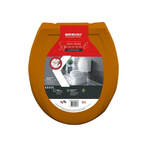 O Assento Sanitário Almofadado Oval Universal Mebuki é resistente, confortável e de fácil instalação. A tampa e o assento não caem, mesmo com louças que possuem caixa acoplada. Parafusos de fixação ajustáveis e reforçados, acompanhados de porcas cônicas, que garantem um melhor ajuste para seu vaso. Tampa envolvente que cobre todo o assento. Rebaixo higiênico para facilitar o manuseio. Assento almofadado com poliuretano de qualidade, que evita que a espuma se deteriore com o tempo. Respiro traseiro, posicionado adequadamente para evitar mau cheiro e acúmulo de germes no interior do assento. Compatível com todas as louças sanitárias ovais convencionais do mercado. - Dimensões LxCxA : 39cm x 44cm x 3cm Distância entre parafusos: mínima: 15 cm / máxima: 16,5 cm - CONTÉM 1 Assento Sanitário Oval com Tampa 1 kit Fixação Ean: 7896796301864