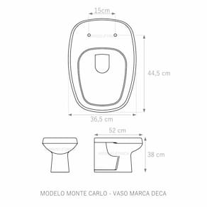 Assento Sanitário Almofadado (tampa de vaso) fabricado em polipropileno e polietileno especial. Resistente, durável, com excelente acabamento e design sofisticado. Assento macio, arco almofadado.Devido a sua composição este produto é totalmente impermeável e de fácil limpeza e higienização. Compatível com vasos sanitários de descarga convencional e também vasos com caixa acoplada. Acabamento brilhante no tampo e no assento. Fixação regulável para o perfeito encaixe na louça sanitária. Fácil limpeza, é higiênico e não acumula sujeira. O assento é acompanhado por parafusos para instalação e acabamentos. Embalagem dupla reforçada garante o recebimento do produto totalmente protegido. Especificações: - Dimensões da caixa: largura: 50,00cm. Altura: 4,00cm comprimento: 40,00cm - Acabamento: brilhante - Uso: este assento é adequado para uso na louça Deca modelo Monte Carlo - Garantia: 3 meses - Itens inclusos: Tampa e assento, parafusos e embalagem duplamente reforçada. Instalação: posicione o produto, devidamente centralizado, em cima do vaso sanitário. Encaixe os parafusos e encaixe as porcas. Aperte até que o assento esteja firme no vaso. Manutenção: recomendamos a limpeza periódica com pano levemente umedecido com sabão neutro. Não usar esponjas abrasivas ou palha de aço nem qualquer tipo de produto químico. Ean: 7891222044308