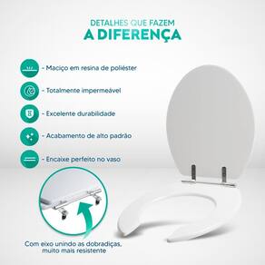 Limpeza: recomenda-se a limpeza do assento sanitário poliéster com água e sabão neutro, não utilizar produtos abrasivos.