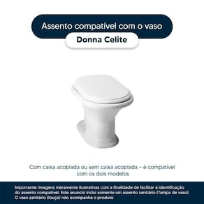 - Compatibilidade: Encaixe perfeito para o modelo Donna da marca Celite, com ou sem caixa acoplada.