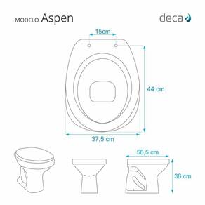 Assento Sanitário Poliéster Aspen Branco para vaso Deca, qualidade e requinte para o seu banheiro. Esta Tampa de Vaso é fabricada 100% em Resina Virgem de Poliéster. É impermeável, ultra resistente, tem acabamento brilhante e ferragem metálica que não enferruja. Com materiais de primeira linha, destaca-se por sua qualidade impecável. É compatível para uso em vaso sanitário com ou sem caixa acoplada. É muito rápido e fácil instalar, acompanha parafusos de fixação e com apenas uma chave de fenda é possível instalar no vaso sanitário. Entrega garantida e rastreada com embalagem dupla reforçada. Cor: Branco. Distância entre os parafusos: 15cm. Acabamento: brilhante. Dicas: Itens inclusos: 01 assento sanitário em resina maciça de poliéster Limpeza: fácil limpeza e manutenção. Recomenda-se a limpeza com água e sabão neutro e não utilizar produtos abrasivos ou químicos. Instalação: Sem desmontar o produto, posicione os dois parafusos com borrachas pretas sobre os buracos da bacia sanitária e os encaixe dentro deles. Aperte com a chave de fenda no sentido horário até ficar firme. Importante: este anúncio inclui somente o produto conforme descrição acima. Todos os elementos decorativos das fotos não estão inclusos. Observação: O código 6LPF / 1.6gpf gravado na louça sanitária corresponde ao fluxo de água de uma descarga e não indica o modelo da mesma.