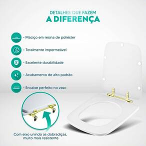 Durabilidade e Resistência: Fabricado em resina maciça de poliéster, este assento sanitário é altamente resistente e totalmente impermeável.