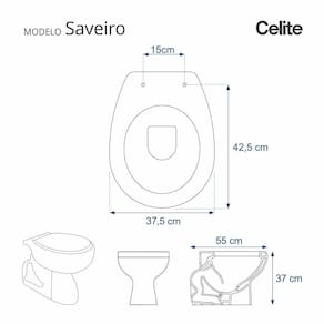 Assento Sanitário Poliéster Com Amortecedor Saveiro Branco Para Vaso Celite completa seu banheiro com requinte e sofisticação. Possui exclusivo sistema de amortecedor soft close para fechamento suave da tampa e do assento, acompanhando as mais modernas tendências em decoração. O Assento Sanitário Saveiro Branco é produzido em resina maciça de poliéster, totalmente impermeável, muito resistente. Apresenta excelente durabilidade. Com acabamento de alto padrão, é considerado o melhor material para assentos sanitários do mercado. Proporciona mais higiene e conforto. Fica firme no vaso sanitário. Produto completo, acompanha os parafusos para fixação. Instalação rápida e fácil, basta uma chave de fenda e fica pronto em menos de um minuto. Compatível para uso em vaso sanitário Celite modelo Saveiro com ou sem caixa acoplada. O sistema soft close é composto por dois amortecedores, um para a tampa e outro para o assento. Estes amortecedores ficam dentro das ferragens do produto (não ficam aparentes). Eles fazem com que a tampa e o assento desçam lentamente, então caso uma pessoa solte a tampa do assento sanitário, ela irá descer lentamente, sem bater. Isto é especialmente útil em casas com crianças pequenas, além de ambientes sofisticados e de alto padrão. Dicas: Instalação: Sem desmontar o produto, posicione sobre o vaso sanitário e encaixe os dois parafusos com as borrachas pretas dentro do furo do vaso. Aperte com a chave de fenda no sentido horário até ficar firme. Ao girar o parafuso a porca irá subir, pressionando a borrachinha preta que irá prender por pressão nos furos do vaso. Limpeza: Recomenda-se a limpeza com água e sabão neutro, utilizando um pano macio. Não utilizar produtos abrasivos ou químicos. Importante: este anúncio inclui somente o assento sanitário poliéster soft close conforme descrição acima, todos os elementos decorativos das fotos não estão inclusos.