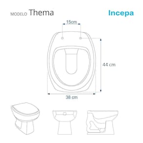 Detalhes e Cuidados Especiais: * Cor: Ebano (Preto) * Compatibilidade: Modelo Thema da marca Incepa * Conteúdo da Embalagem: Assento sanitário, parafusos de fixação e instruções de instalação. * Fabricante do Assento Sanitário: Pontto Lavabo.