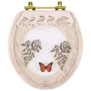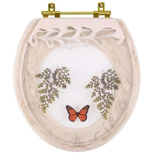 O Assento Sanitário Poliester Decorado Oval Convencional Biscuit Avenca com Borboleta Vermelha Com Ferragem Dourada é a opção ideal para quem busca combinar funcionalidade com elegância em seu banheiro.