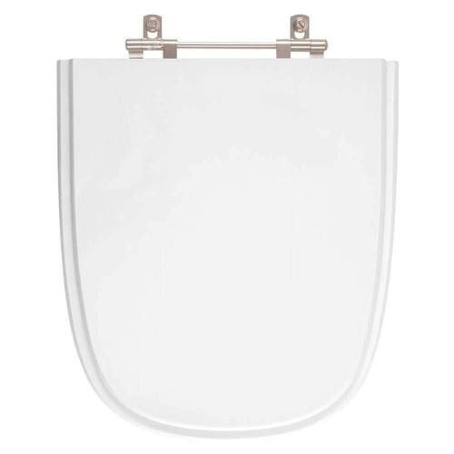 O encaixe do assento sanitário no vaso é feito por uma ferragem metálica que não oxida e não enferruja.