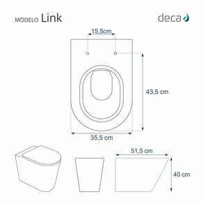 Compatível com o vaso sanitário Deca modelo Link/LK com ou sem caixa acoplada.