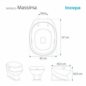 Assento Sanitario Poliester Massima Branco para bacia Incepa. Assento para vaso sanitário em resina de poliéster, produto de excelente durabilidade com acabamento de alto brilho. É o assento sanitário de maior beleza com resistência e estética inigualáveis. Devido a sua composição maciça em resina de poliéster este produto é totalmente impermeável e de fácil limpeza e higienização. Assento compatível com vasos sanitários de descarga convencional e também vasos com caixa acoplada. Tem 10 calços de PVC instalados na tampa e no assento para proporcionar estabilidade ao distribuir o peso uniformemente sobre a louça sanitária. Embalagem dupla reforçada garante a entrega do produto em sua casa totalmente protegido. Manutenção: recomendamos a limpeza periódica com água e sabão neutro. Não usar produtos abrasivos, esponjas e/ou palhas de aço, nem qualquer tipo de produto químico. Especificações: - Dimensões da caixa: largura: 51,50cm, altura: 4,00cm, comprimento: 39,00cm - Peso do produto: 2,75kg - Código do produto: 900168 - Cor: Branco - Acabamento: brilhante - Uso: este assento é indicado para uso nas bacias Incepa, Cidamar ou Laufen modelo Massima - Marca: Pontto Lavabo - Garantia: 12 meses - Itens inclusos: Tampa e assento com calços de PVC, ferragem metálica inoxidável, embalagem duplamente reforçada. Contém todos os parafusos e encaixes para instalação, sendo necessária somente uma chave de fenda para instalar o produto na bacia sanitária. - Instalação: posicione o produto, devidamente centralizado, em cima do vaso sanitário. Sem desmontar a ferragem, insira as buchas de borracha dentro dos furos da bacia sanitária. Utilizando uma chave de fenda, aperte o parafuso no sentido horário até que o assento esteja firme no vaso. Ean: 7897116742244