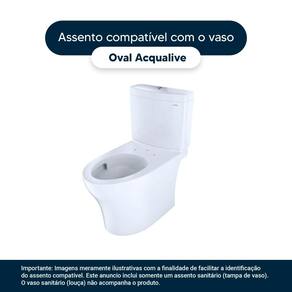 * Cor: Branco * Compatibilidade: Modelo Oval Alongado da marca Acqualive * Conteúdo da Embalagem: Assento sanitário, ferragem completa, parafusos de fixação e instruções de instalação. * Fabricante do Assento Sanitário: Pontto Lavabo (enviado na caixa conforme foto no anúncio).