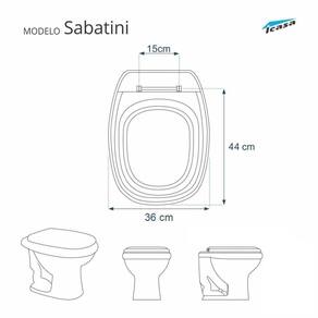 Assento sanitário para Louça Sabatini (Icasa) fabricado com 100% de resina de poliéster virgem, sem adição de talco industrial, fibra ou manta de madeira. Devido a sua composição maciça em resina de poliéster este produto é totalmente impermeável, resistente a água, fácil higienização e alta durabilidade. Superfície polida com alto brilho e padrão de acabamento Premium. Montado com rebites ocultos e ferragem em aço inoxidável, resistente às condições mais severas encontradas em um ambiente sanitário e com 8 batedores em PVC que proporciona maior durabilidade e conforto. Acabamento: Alto Brilho Acompanha Manual de Instalação: Sim Altura: 4 cm Ambiente Principal: Banheiro Comprimento: 53,5 cm Cor: Salmão Cor do Produto: Salmão Distância dos Furos: 15 cm Espessura: 10 mm Fechamento: Comum Ferragens: Aço Indicado para bacia: Sabatini Informações Complementares: Não subir ou sentar na tampa do assento Instruções de instalação: Verificar manual de instalação Itens Inclusos: Componentes de fixação Largura: 39,5 cm Linha ou Coleção: Aço Inox Linha recomendada para uso: Sabatini Manual de Montagem e Instalação: https://product-hub-prd.madeiramadeira.com.br/899443/documents/0fa07a0e-0d6c-414b-b62c-77a564f9c4e4stalacaolimpezaassentoliso.pdf Marca recomendada para uso: Icasa Material Principal: Poliéster Origem do Produto: Nacional Peso: 3 kg Possui rebaixamento frontal: Não Proteção antibacteriana: Não Quantidade De Calços: 8 Recomendações de Uso, Manutenção e Limpeza: Usar somente água e sabão neutro com um pano macio, não use produtos abrasivos, álcool, espoja de aço, detergentes fortes ou produtos químicos agressivos, Para manter o brilho use cera polidora para automóveis ou lustra móveis. Resistência a Risco: Sim Superfície lisa: Sim Suporta Até (kg): 280 kg Tipo de Assento: Específico Tipo de Fixação: Parafusado Marca: Sedile Assentos
